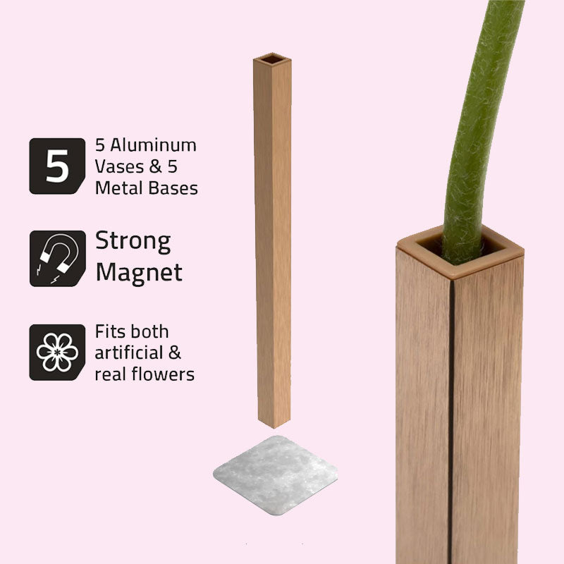 Can't put a big vase? Want to put a flower in it but afraid of taking up space? This magnetic long vase has built-in high-quality strong magnets, elegant and slender, and can be firmly attached. It can easily turn the desktop and metal bookshelf into a private small garden.